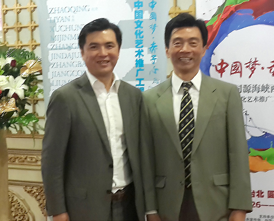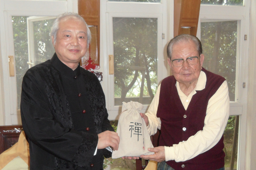 著名禅画大师张大华(左一)与台湾邱创焕(右一)合影
