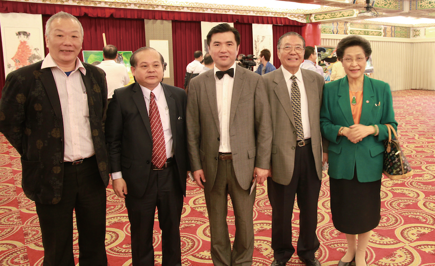 协会名誉会长赵青(右四)、丹青天地(北京)文化艺术发展有限公司副总经理吴同男(左一)、台湾亲民党妇女部部长陈姶靜(右三)、著名油画家周颖超先生(右一)等人合影留念