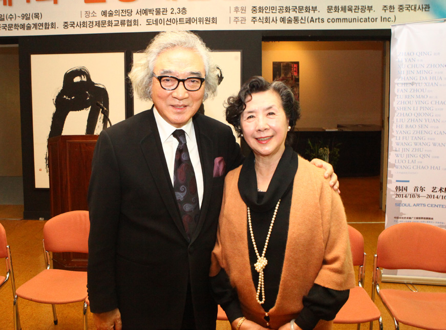 2014年10月8日在韩国首尔艺术殿堂,协会名誉会长赵青与韩国文化艺术界嘉宾在开幕式现场合影